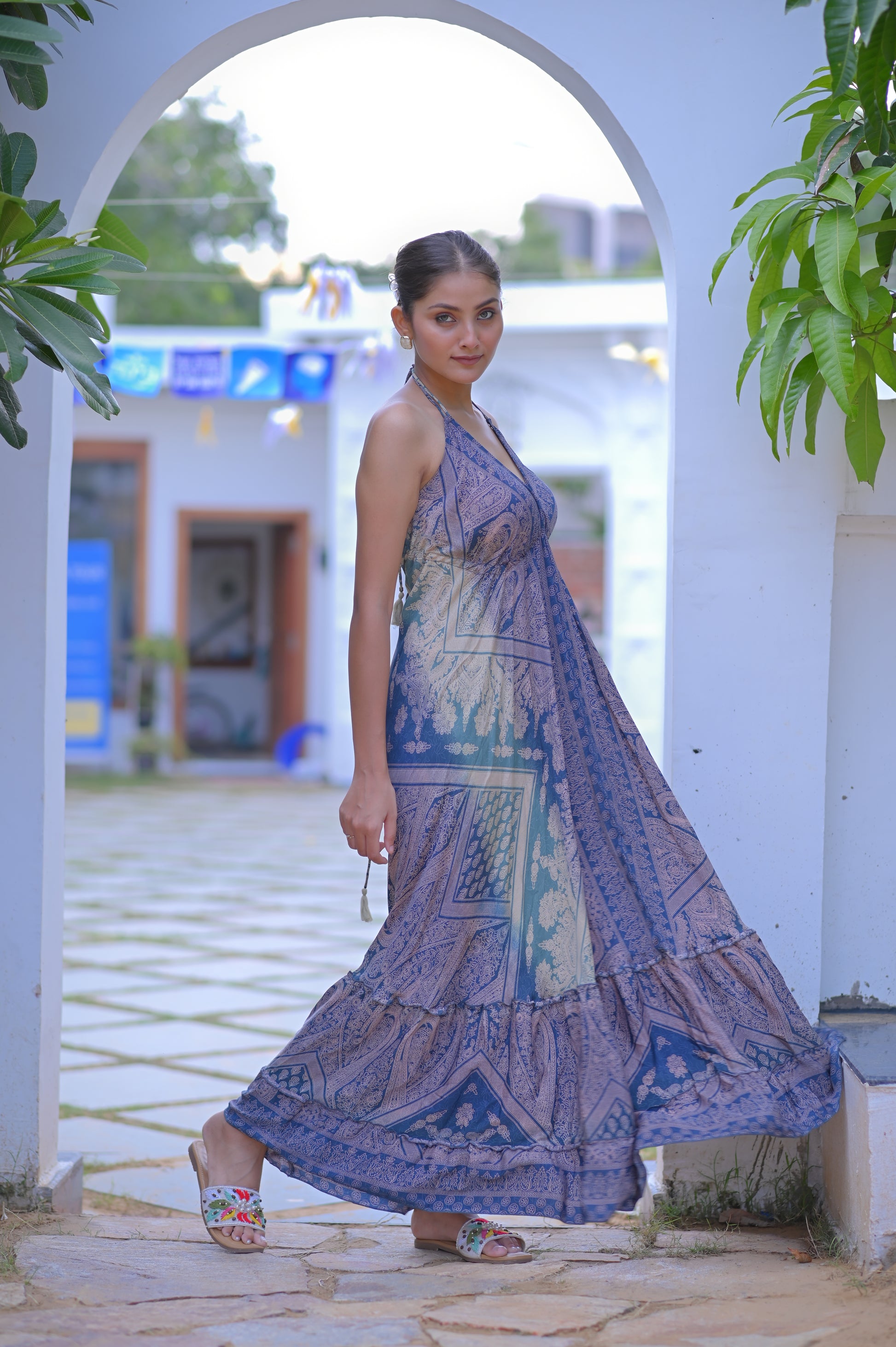 Discover elegance in motion with our Silk Frill Maxi Dress, crafted from luxurious silk for a soft, fluid silhouette. Featuring cascading frill tiers and a graceful maxi length, this statement piece brings romance and sophistication to every occasion — from festive celebrations to evening events and resort getaways.